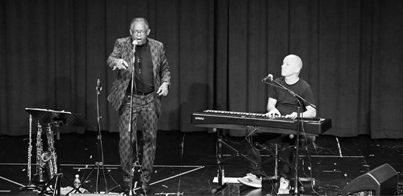 The Malcolm Green Trio sind Malcolm Green, Gesang, Saxophon und Querflöte, Marcel Schefer, Gesang, E-Piano, und Andy Leumann, Schlagzeug.